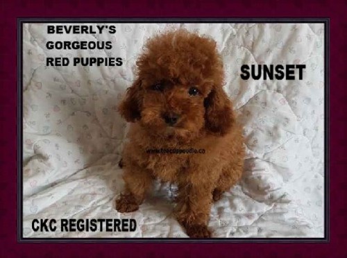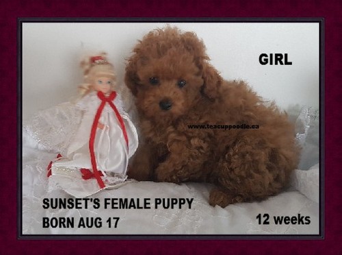 I HAVE A VERY CUTE NEW BORN LITTER OF TINY TOYS/ TOY POODLE PUPPIES THEY WERE BORN SEPTEMBER 22 / 2024 ALL ADOPTED SUNSET ( MOM ) ROCKET ( DAD ) ONE GIRL - ADOPTED BY LUANNE.C - BOY 1 - ADOPTED BY CAMILLA.C - BOY 2 - ADOPTED BY Leanne.T - BOY 3- ADOPTED BY KATRINA . F MOM AND PUPPIES AT 11 WEEKS GIRL - ADOPTED BY LUANNE.C I AM NOW LIVING IN TORONTO ------------------------------------------------- MALE ONE - ADOPTED BY CAMILLA.C i am now living in BRITISH COLUMBIA ---------------------------------------------------- MALE TWO - ADOPTED BY LEANNE .T ---------------------------------------------------- MALE THREE - ADOPTED BY KATRINA.F I AM LIVING NOW IN CALGARY ---------------------------------------------------- xxxxxxxxxxxxxxxxxxxxxxxxxxxxxxxxxxxxxxxxxxxxxxxxxxxxxxxxxxxxxxxxxxxxxxxxxxxxxxxxxxxxxxxxxxxxxxxxxxxxxxx ------------------------------------------------------------------------------------------------------------------------------------------ SUNSET AND MERCEDES 3 MALE PUPPIES one apricot, two black - all males all 3 puppies were 3 - 4 0zs at birth THESE PUPPIES HAVE THEIR HEALTH CERTIFICATE , DEWORMED AND PUPPY SHOTS TAKING DEPOSITS NOW NO RESERVE OR HOLD WITH OUT A DEPOSIT ONCE THE PUPPY HAS SEEN THE VET ********************************************* one week Boy 1 - ADOPTED BY DEBBI .V I HAVE GONE TO MY NEW HOME IN WINNIPEG -------------------------------------------- one week boy 2 - RESERVED FOR MISHALE. L Deposit received ---------------------------------------------------- one week BOY 3 -- ADOPTED BY DEANN.G ON MY WAY TO HALIFAX ((((((((((((((((((((((((((((((((((((((((((((((((((((((((((((((((((((((((( ***************************************************** ***************************************************** ***************************************************** PREVIOUS LITTER SUNSET X PRINCE OF GOLD - PUPPIES BORN MARCH 10 (ONE GIRL and ONE BOY) FEMALE PUP - ADOPTED BY DENISE AND RENISE ( I HAVE NOW GONE TO MY NEW WONDERFULL HOME) ----------------------- MALE PUP - RESERVED FOR DAVE AND BRENDA.P ( I AM WAITING TO FLY TO CALGARY SOON ) *************************** *************************** *************************** PREVIOUS LITTER BELOW ************************* ************************* ************************* SUNSET AND PRINCE OF GOLD BORN AUG 17/ 2020 ALL PUPPIES BORN AUG 17 ARE ADOPTED ******************* BOY # 1 - ADOPTED BY SAM (I have gone to my new home) He took really well to the bed I bought him so I put that in his kennel with the door open and the pen around. He slept VERY well with barely any whining...we shall see what happens when I close the door!! He is adjusting very well and I think he is starting to get very comfortable with me (he is VERY cuddly!!). He loves playing fetch...he caught onto the basics of it very quickly I was shocked. He is pooping largely on the pads...pee is about 50/50 lol but we will get there!! I love him so much already...he’s a sweetheart. Thanks again :) ******************* BOY #2 - ADOPTED BY VERONICA. C (I have gone to my new Wonderfull home in Toronto)  Good morning, He slept through the night after doing his business on the newspaper. He is so friendly and calm. We played with him this morning and he loved his belly rubs and cuddling time. We are in love with him! Thanks a million, Veronica ---------------------- Dear Beverley, From the bottom of our heart, THANK YOU! Here is our customer review: From our very first conversation with Beverley, we knew that Beverley was an honest, reputable, and knowledgeable teacup poodle breeder. She answered all of our questions via email and phone and always made us feel reassured and at ease. The entire puppy process was seamless from beginning to end, even days after we received our pup. It is extremely obvious that Beverley loves raising poodles that are friendly, calm and playful. It's only been a week since we got our puppy Teddy and we already adore him. After flying to Toronto, Teddy slept through the night, no crying or whining, and did his business on the newspaper we left for him, just as Beverley told us he was trained to do. Today was his vet appointment and our vet said he was healthy and well-mannered and that his breeder did a fantastic job with him! He is adjusting very well to his new home and loves spending time playing and cuddling with the entire family. We are forever grateful to Beverley for raising such an amazing little puppy and showering him with love and care. Thanks a million, Veronica and family ******************* GIRL - ADOPTED BY JANET.F I HAVE GONE TO MY NEW FABULOUS HOME NOW IN THUNDER BAY , ONTARIO