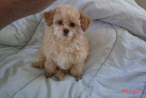 SOLD --- TO - DARRYL AND GLADYS---. CREAM FEMALE PUPPY BORN DEC 25 --- TEACUP - -- 17.7 ozs at 8 weeks